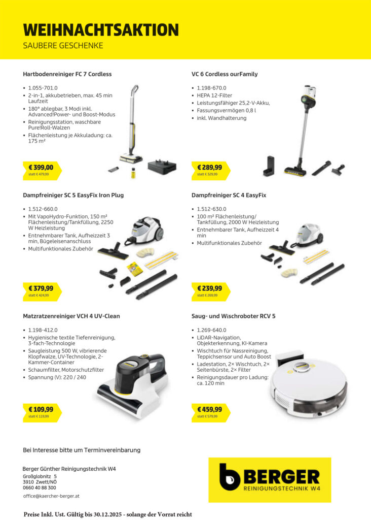 19. Dezember 2025 Saubere Geschenke gibt es heuer zu Weihnachten von Kärcher, dank der Weihnachtsaktion 2025.Flyer öffnen (PDF)