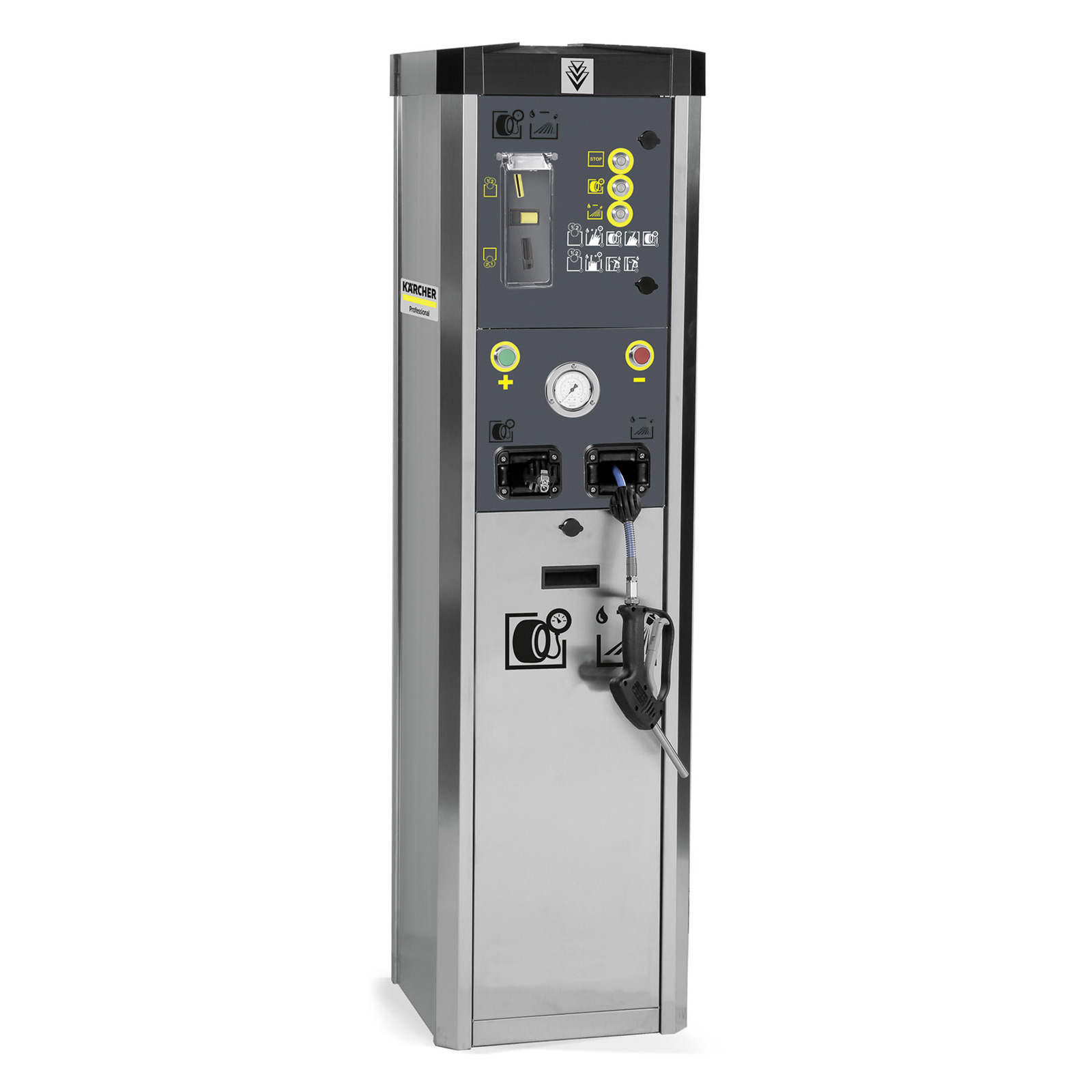Auch im Winter problemlos einsetzbar: Der frostgeschützte Air Water Tower AWT Fp vereint ein präzises Reifendruckprüfgerät und einen komfortablen Wasserspender in einem Forecourtgerät.