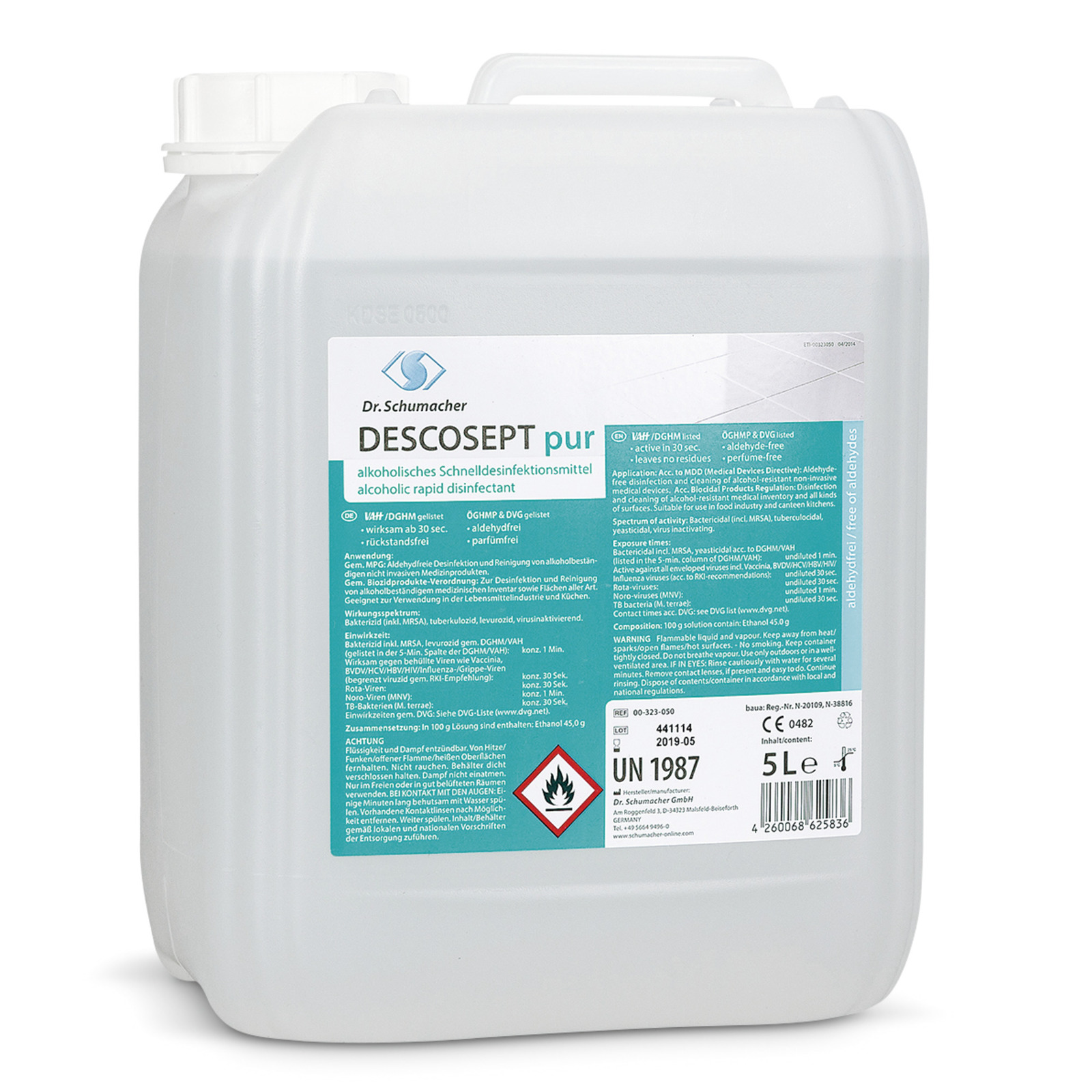 Alkoholisches gebrauchsfertiges Schnelldesinfektionsmittel zur schnellen, wirksamen und rückstandsfreien Desinfektion.
