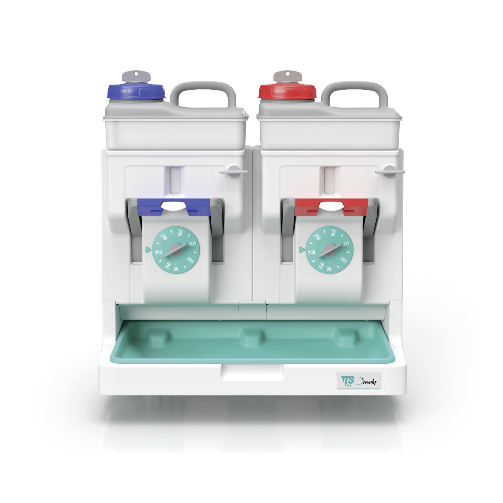 Doppelte Dosiereinheit für die Tränkung der Mopps je nach Anforderung, inkl. Set mit Etiketten (1 rot/1 blau).