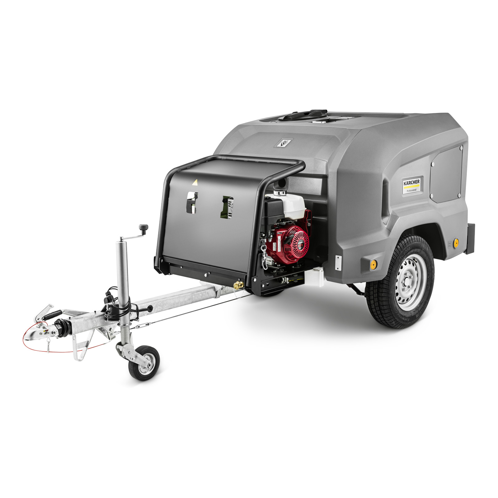 Mobile und autarke Lösung für lange Hochdruckreinigungseinsätze auf Baustellen und in Kommunen: HD-Trailer HD 9/23 Ge Tr1 mit Honda-Benzinmotor (EU STAGE V) und 1000-Liter-Wassertank.