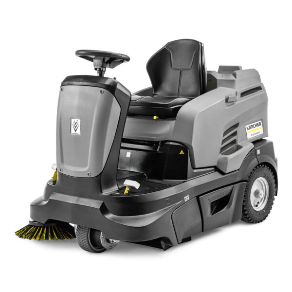 Robuste und kompakte Aufsitz-Kehrsaugmaschine KM 90/60 R Bp Pack mit automatischem Rundfilter-Abreinigungssystem, leistungsstarken 180-Ah-Batterien und integriertem Ladegerät.