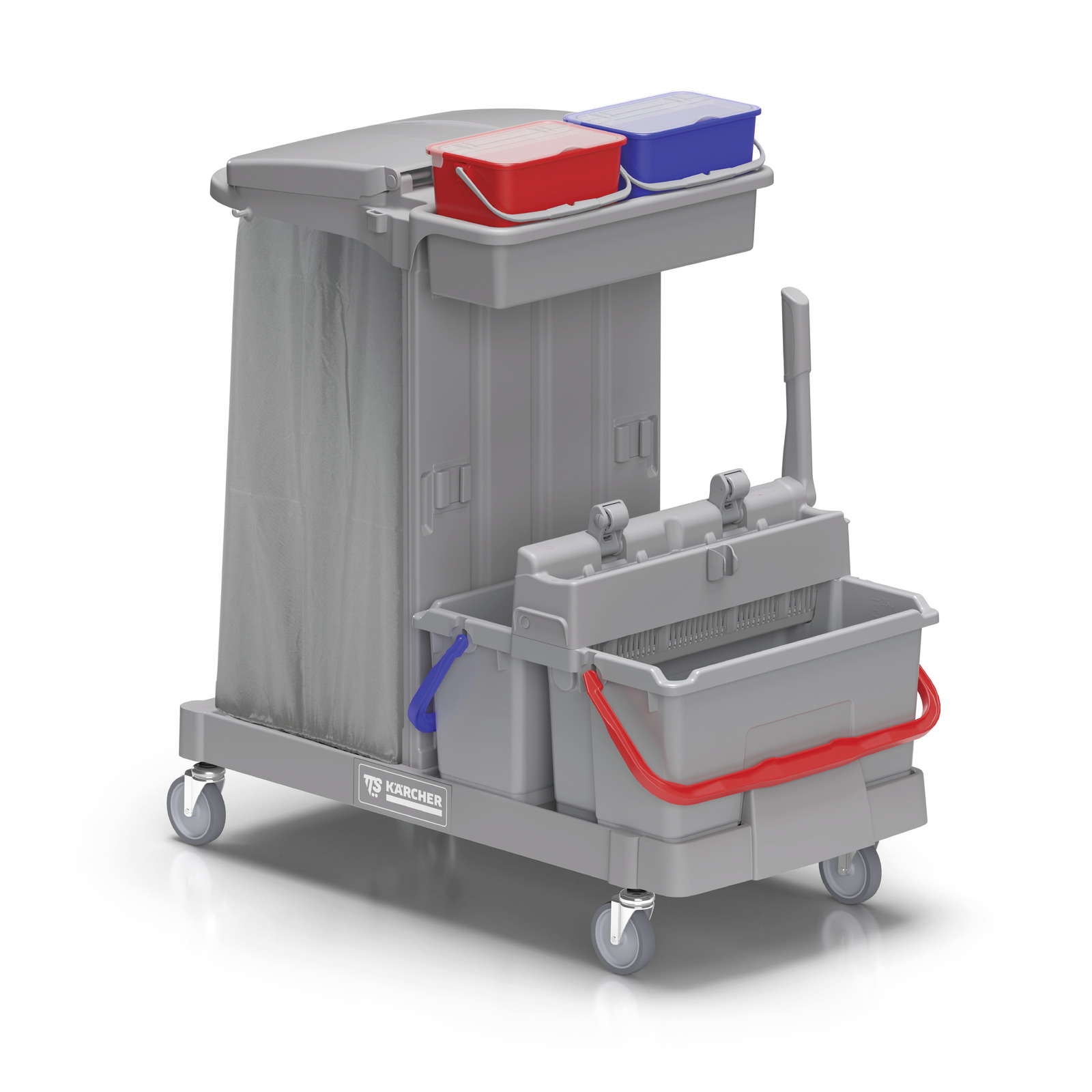 Systemwagen mit 2 Einheiten: 120 L Sackhalter und Reinigung durch Presse mit Doppelsystem mit 2 Eimer.