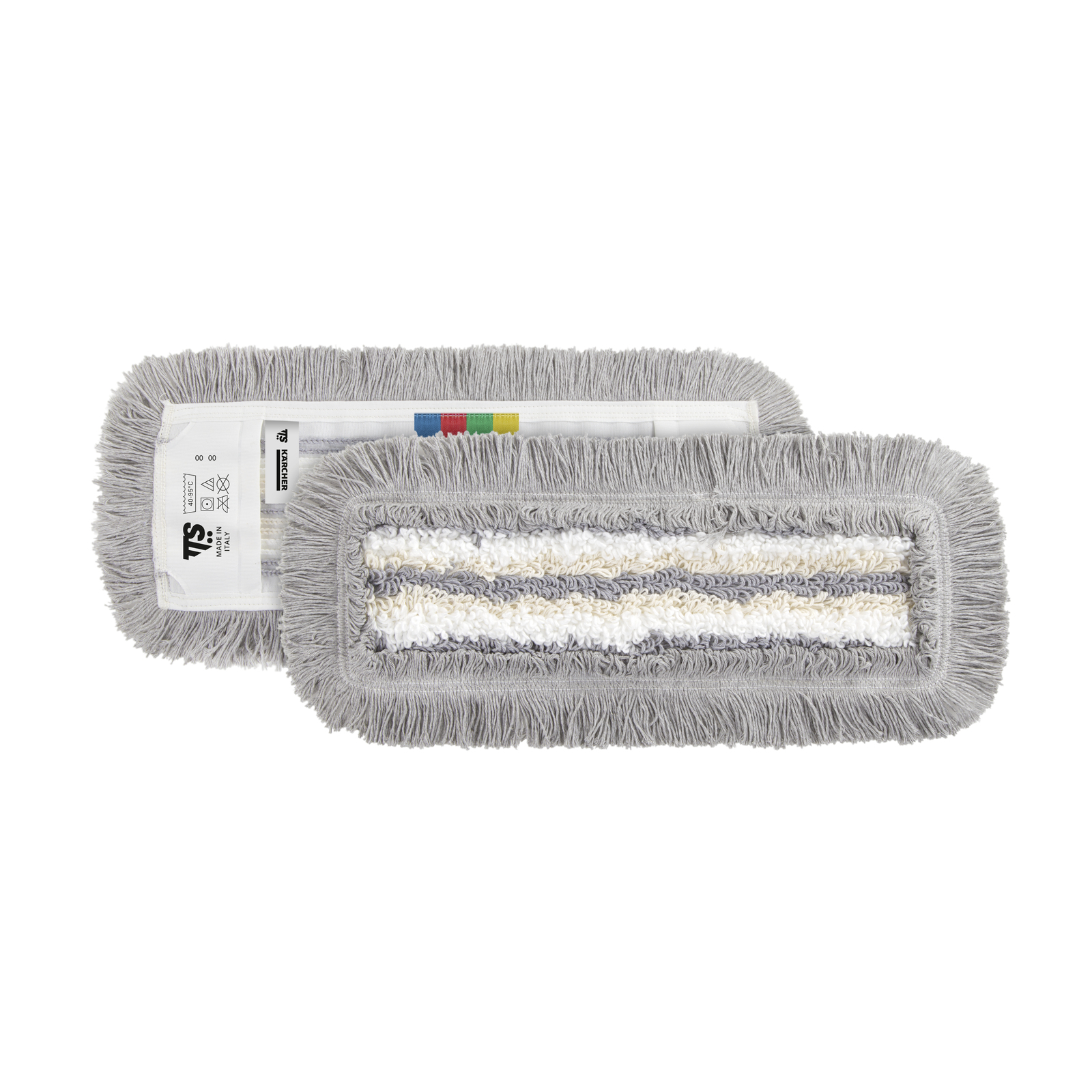 Taschenbezug aus Mikrofaser, Baumwolle und Polyester, mit geknüpftem Tufting-System, innen Schlingen / außen offene Fransen mit Trägerschicht aus Polyester.