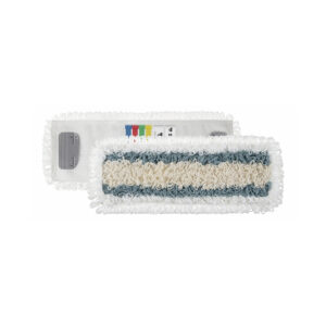 Weißer Mikrofaser-Laschenbezug mit blauen Streifen, intensiver Wirkung und Trägerschicht aus Polyester.